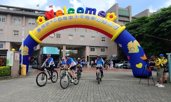 單車天使公益圓夢之旅邁入第十三年。7月3日,氣溫高達34度,5校師生及志工組成71人的騎行團隊,在組委會王盟仁董事長授旗後,領隊楊民忠老師帶領團隊從桃園楊明國中誓師發車。