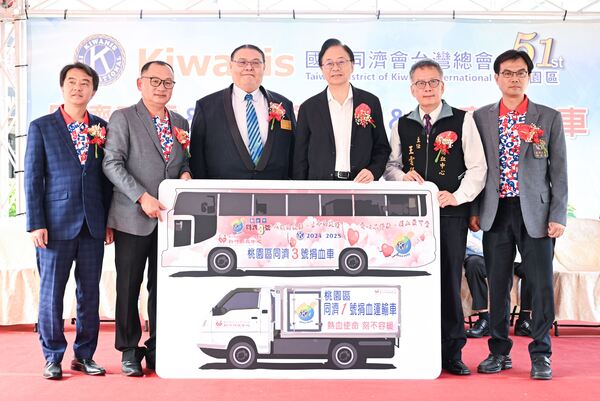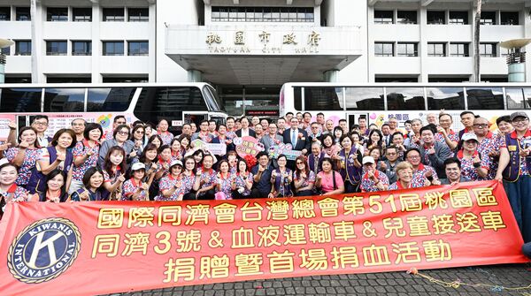 桃園市長張善政24日上午於桃園市政府前廣場出席「國際同濟會台灣總會第51屆桃園區同濟三號及血液運輸車捐贈暨首場捐血活動」。張市長表示,國內近年血庫資源緊張,此次捐贈將可強化桃園捐血與配送能量,確保緊急用血所需,感謝同濟會持續深耕公益,號召桃園區50個分會及企業共同捐贈「同濟三號捐血車」、「血液運輸車」與「兒童交通車」各一輛,並提供39萬8,000元教育補助金,總價值超過1千萬元,充分展現對本市醫療、教育資源及社會關懷的重視。