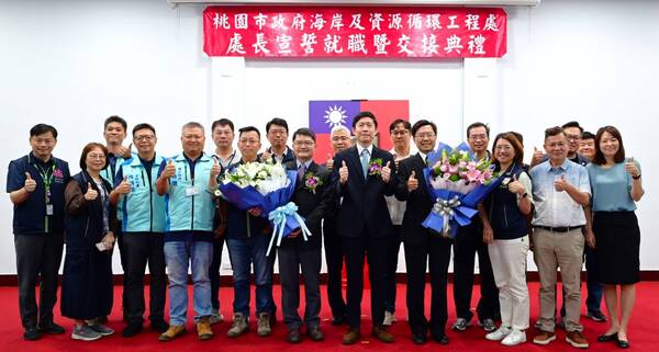 桃園市政府環境保護局「海岸及資源循環工程處」(簡稱海資處)首長宣誓就職暨交接典禮,25日上午10時於環保局二樓多功能集會所隆重舉行,由局長顏己喨主持,市府同仁與各界來賓共同出席見證。此次由原水務局總工程司林立昌接任海資處長一職,接棒調升為環保局副局長的呂明錡,展現市政團隊穩健的人才布局與歷練傳承,確保施政持續推進、動能不斷。