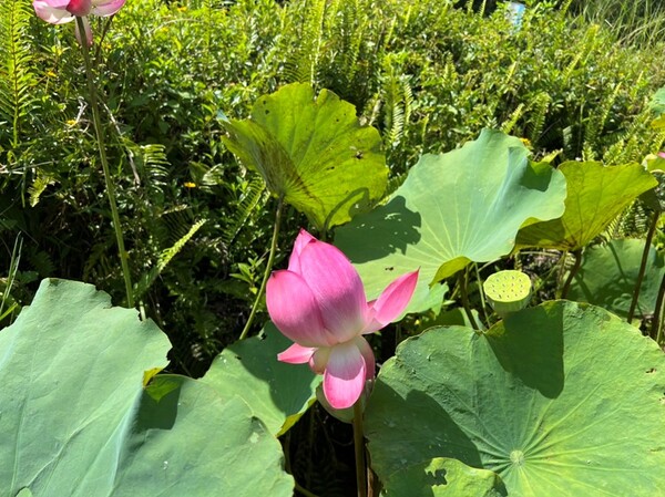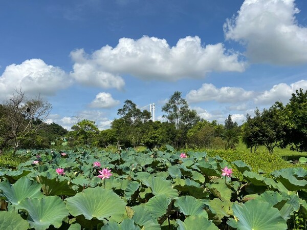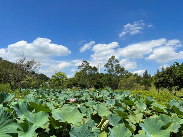荷葉目前已大面積展開,部分花苞也陸續形成,預計將於8月初進入盛開期,屆時園區將呈現水面綠葉婆娑、粉白花朵交織的自然景致,是親近自然、賞荷攝影與生態觀察的絕佳時機。不僅吸引許多自然攝影愛好者,對於學校教師、家庭親子等欲從事戶外環境教育活動的群體而言,亦提供了難得的現場教學素材。