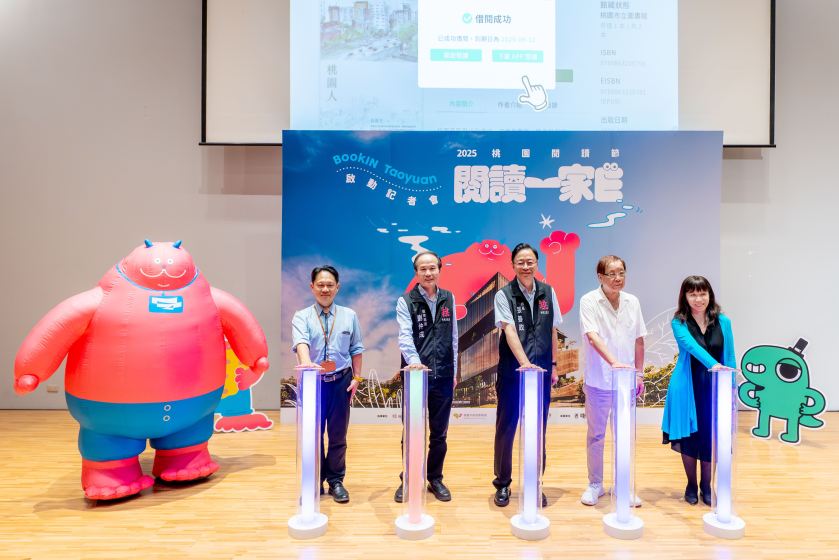 桃園市長張善政8日上午前往市立圖書館總館,出席「2025桃園閱讀節『BookINTaoyuan 閱讀一家 E』啟動儀式記者會」。張市長表示,閱讀節已邁入第3屆,自即日起至12月15日舉行,以「科技」為年度主題,串聯全市各區圖書館,規劃主題閱讀角、作家推薦、親子體驗、夜宿圖書館及草地閱讀慶典等活動,期盼市民從小養成閱讀習慣,將書香融入家庭與城市。