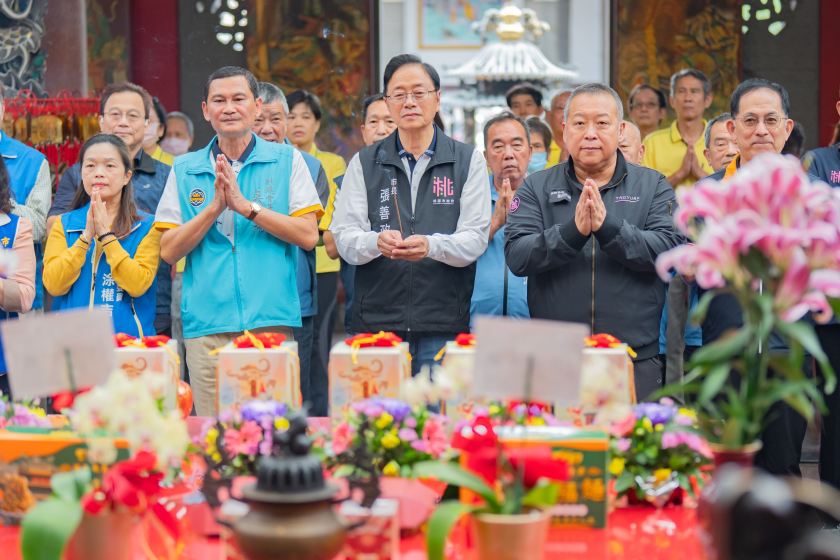 桃園市長張善政1日下午前往楊梅區,出席「頭重溪三元宮參香活動」。張市長表示,今(114)年適逢三元宮建廟200週年,將於11月23日至29日結合「2025桃園三界爺文化慶典」,以參香遶境及祈福法會等方式,接連舉辦7日活動,預祝慶典活動圓滿順利、信眾平安健康。
