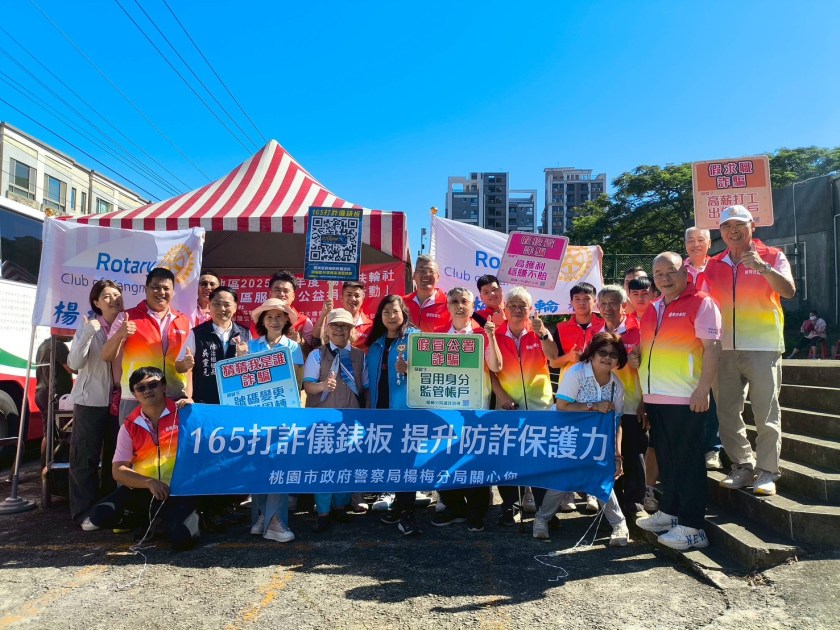 楊梅分局為加強宣導保護婦幼、交通安全及反詐騙犯罪預防等基本觀念,由防治組組長吳黨元及草湳派出所副所長熊宜龍等人於11月9日上午至楊梅扶輪社所舉辦的捐血公益活動現場(楊明國小旁廣場)宣導,現場有主辦楊梅扶輪社社長賈立志、前社長邱亞倫、秘書連振翔、公服主委謝立暘及協辦靜德扶輪社社長陳素聆、3501地區二分區助理總監李素月、楊梅里里長葉星秀等多人捐血響應社會公益。