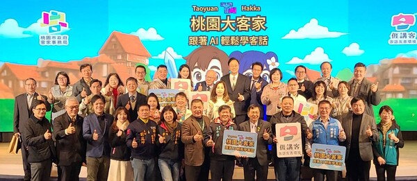 桃園市長張善政8日上午前往平鎮區,出席「桃園大客家Taoyuan TAI Hakka-AI客語學習系統成果發表會」。張市長表示,隨著數位科技發展,語言學習工具應與時俱進,市府結合AI技術與行動裝置便利性,推出「桃園大客家Taoyuan TAI Hakka」系統,不僅優化操作介面,更打造直覺化的學習環境,期盼透過科技助攻,讓客語學習更為普及且深入生活。