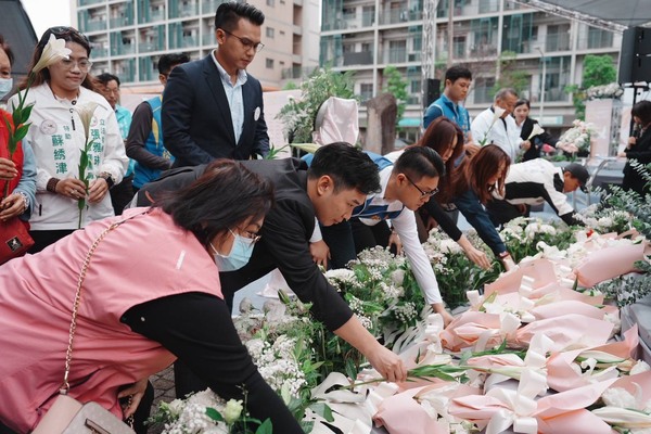 儀式中,張善政市長首先向二二八紀念碑獻上花圈,隨後帶領全體與會人員默哀致敬。接著,由現場貴賓、受難者家屬及市民朋友依序獻花,並在追思板上,親手貼上象徵自由與祥和的「和平鴿」,表達對受難者最深的敬意與思念,也象徵市民攜手守護民主與和平的價值。