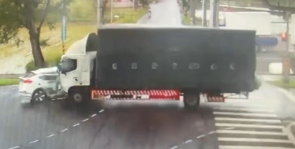 警方初步調查指出,63歲朱姓男子駕駛自小客車,沿高鐵南路七段行駛,行經事故路口左轉時,與沿高鐵南路直行之大貨車發生碰撞。該輛大貨車由39歲羅姓男子駕駛,撞擊力道猛烈,造成自小客車車體嚴重毀損。