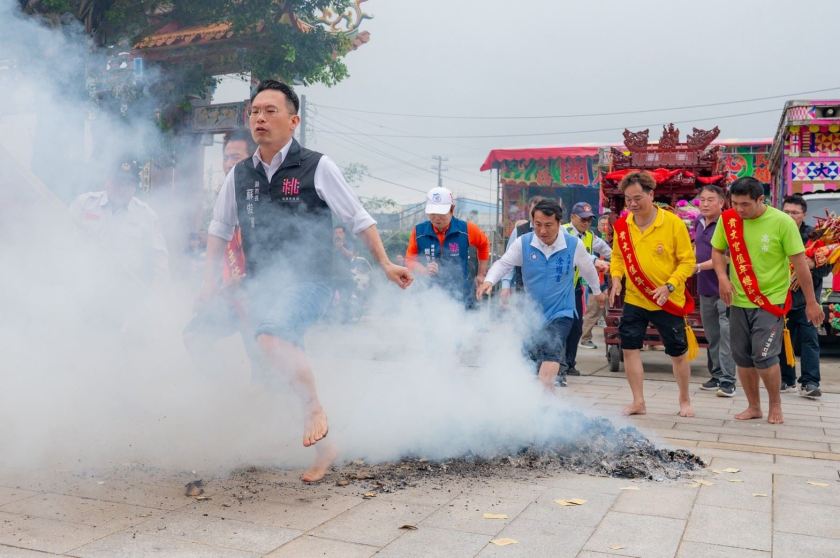 蘇俊賓表示,三年前首次參與過火時心情略顯緊張,當時內海里許程睿里長在旁鼓勵「跟著做就對了」,讓他順利完成儀式;隨著年年參與,如今再次踏上火堆,在九府王爺與夫人庇佑下,內心更顯平靜與安定。今年除徐其萬主委及貴文宮團隊外,涂權吉委員與青峰里劉秋霞里長也陪同赤腳過火,展現地方共同守護信仰的凝聚力。