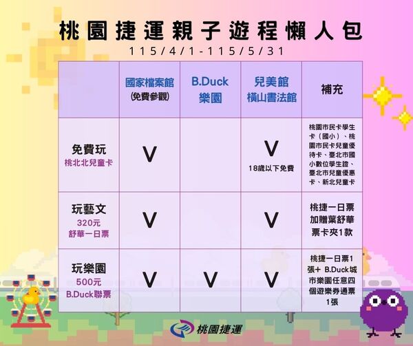 ◎「桃捷 x B.duck城市樂園聯票」票種說明:https://reurl.cc/zQrQ5N