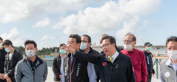 桃園市長鄭文燦6日上午前往新屋區進行永安漁港道路修