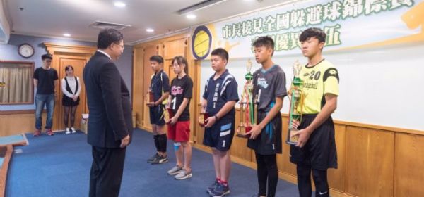 桃園市長鄭文燦11日下午於市府,接見全國躲避球錦標