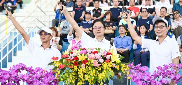 桃園市長張善政18日上午前往桃園市立田徑場,出席「