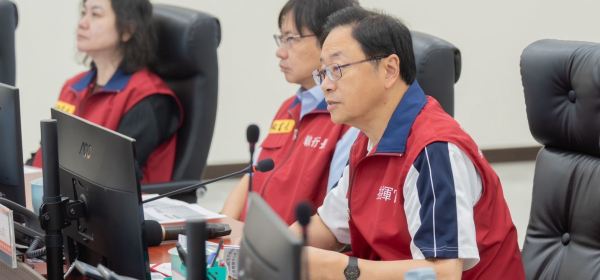 桃園市長張善政7日上午前往消防局主持「丹娜絲颱風」