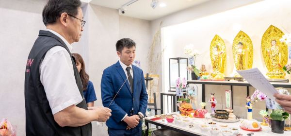 在八德區,陽光穿過雲層,灑落在莊嚴的大廳裡,空氣中