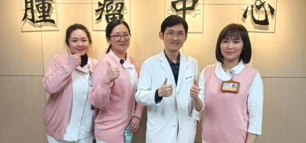 耳鼻喉科鄭爵儀主任(右二)、 癌症中心護理長郭昭岑