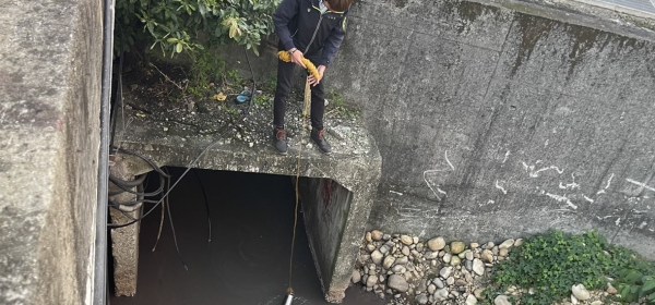 27日民眾於社群媒體貼文,指出蘆竹區大坑溪遭染紅,
