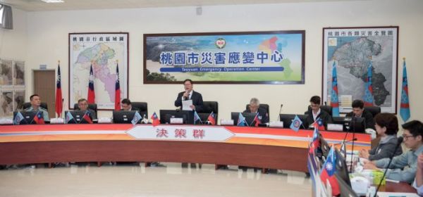 桃園市長鄭文燦12日上午前往消防局災害應變中心,主