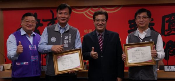 桃園市副市長游建華20日上午主持市政會議,表揚桃園