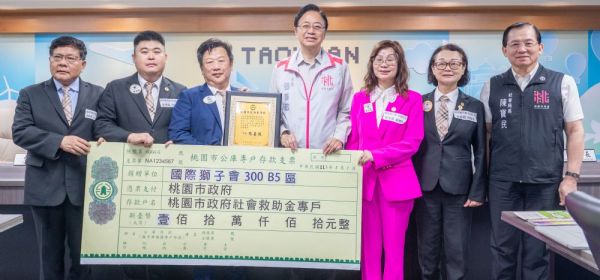 桃園市長張善政1日上午主持市政會議,頒發「國際獅子