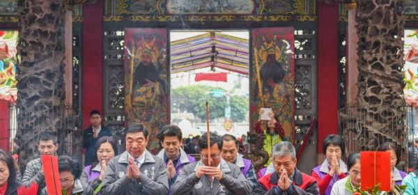 桃園市長鄭文燦13日前往楊梅區昊天宮、三湖三元宮、