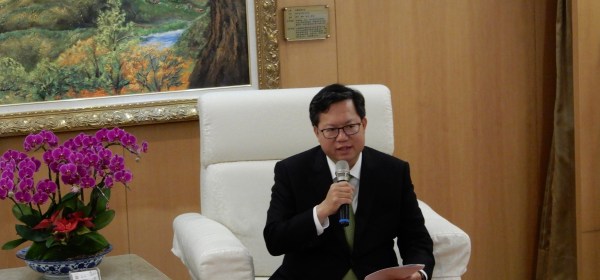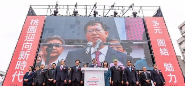 桃園市長鄭文燦25日上午在市府前廣場,出席「桃園市
