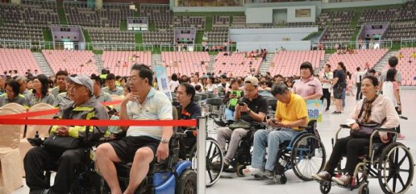 桃園市長鄭文燦4日上午前往桃園國民運動中心,出席「