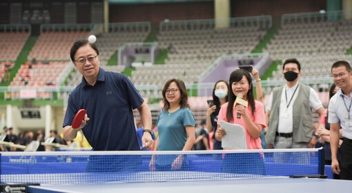 桃園市長張善政16日上午前往桃園市立綜合體育館,出