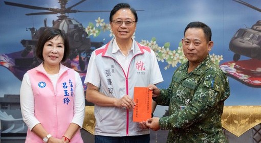 桃園市長張善政14日上午前往陸軍航空第601旅營區