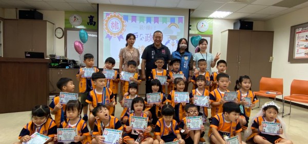 「恭喜你們結婚囉!」在戶政人員的協助下,小朋友一組