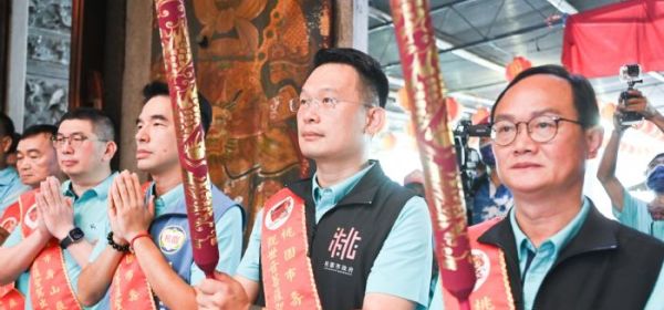 蘇副市長與壽山巖觀音寺董事長林明義參香祈福。 桃園