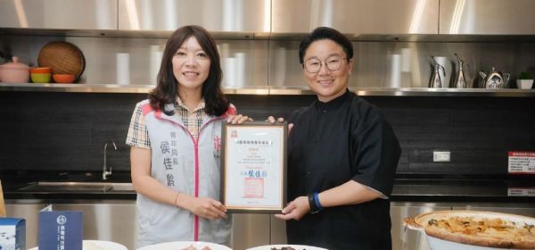 青年事務局侯佳齡局長(左)致贈感謝狀給林聰明沙鍋魚