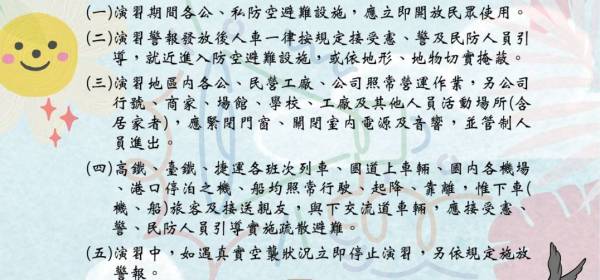 112年度軍民聯合防空(萬安46號)演習採「有預警