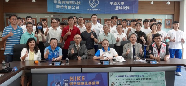 「中原大學籃球校隊經費捐贈儀式」,雙方代表與觀禮人