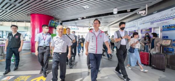 桃園市長張善政3日上午前往機捷A18高鐵桃園站,視