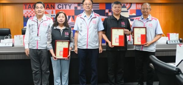 桃園市長張善政28日上午主持市政會議,表揚「111