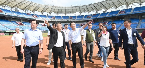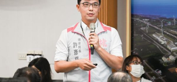 桃園市長張善政7日上午主持市政會議,聽取體育局「樂