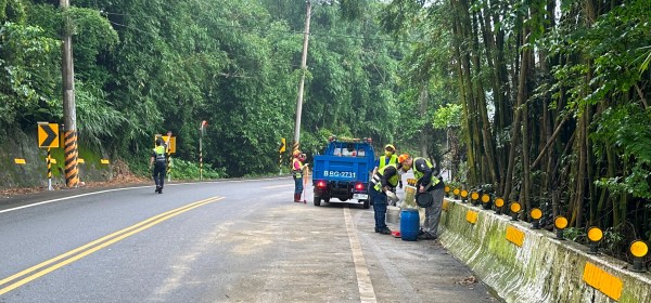 楊梅清潔隊到場清理路面上的油漬。 楊梅區老莊路往龍