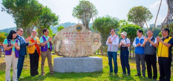 「永續經營 植樹護地球」紀念碑揭牌儀式。 桃園市長
