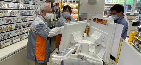 72歲的張先生體驗操作收銀機。 為協助解決服務業缺
