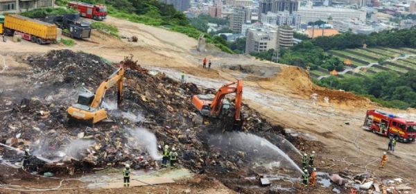 桃園區會稽掩埋場17日下午1時許發生火警,市府接獲