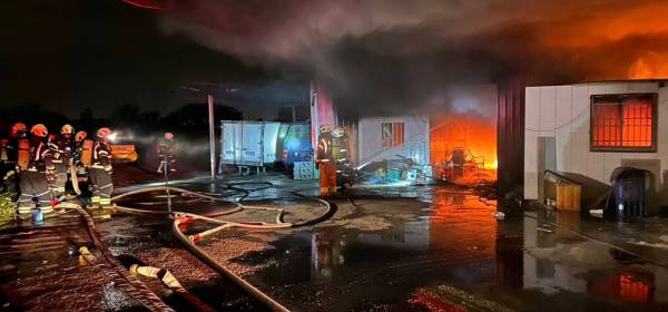 桃園市新屋區一處汽車烤漆廠14日凌晨發生火警,消防