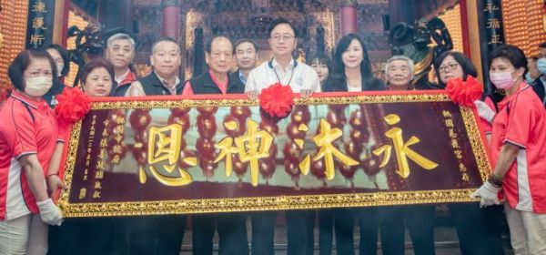 桃園市長張善政(12)日下午前往中壢仁海宮,致贈「