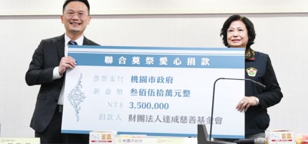 桃園市副市長蘇俊賓代表市府接受350萬元捐助。 桃