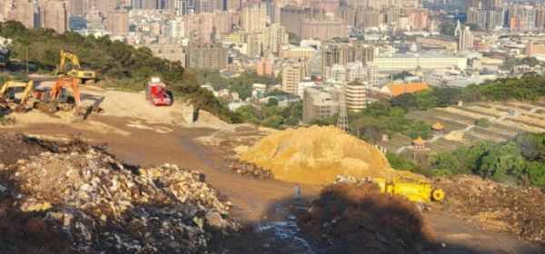 桃園會稽掩埋場14日凌晨因覆熱悶燒,冒出大量濃煙,
