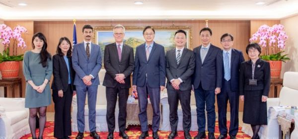 桃園市長張善政14日上午於市府,與英國在台辦事處代