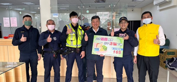 楊梅警3)至轄內金融機構快閃宣導,以播放「阿昭署長