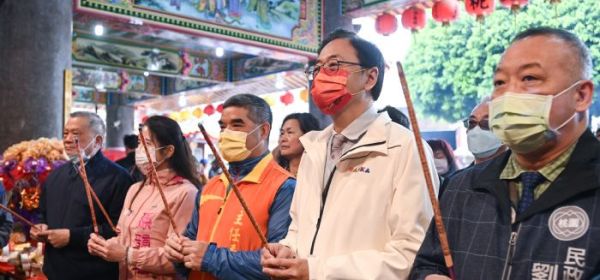 桃園市長張善政21日上午前往龜山區坪頂大湖福德宮參