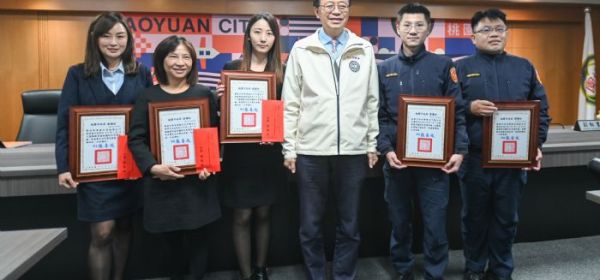 桃園市長張善政15日上午主持市政會議,表揚「桃園市