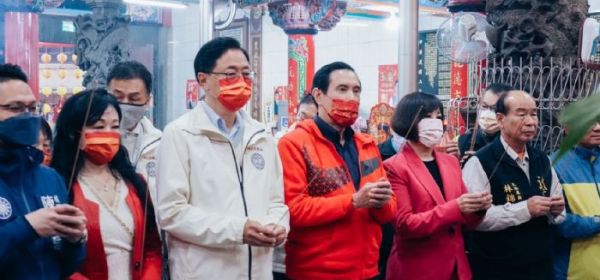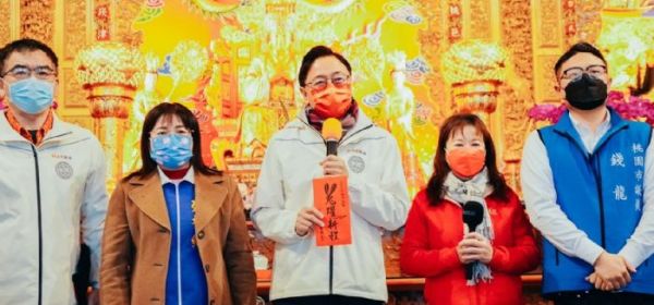桃園市長張善政23日下午前往龍潭南天宮參香祈福,隨