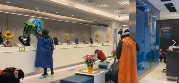 歹徒2名趁銀行即將打烊之際,穿著雨衣騎乘1輛機車,