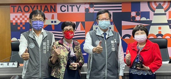 桃園市長鄭文燦23日主持市政會議,公開表揚2022